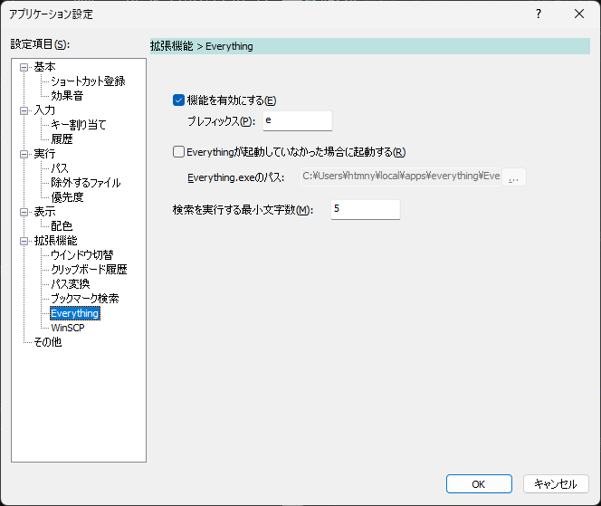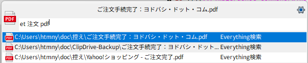 キーワードを入力すると、Everythingでの検索結果を候補として表示する