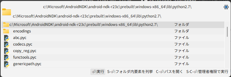パスがフォルダの場合、末尾にパス区切り文字(\)を入力すると、そのフォルダ直下にある要素を候補として表示する。