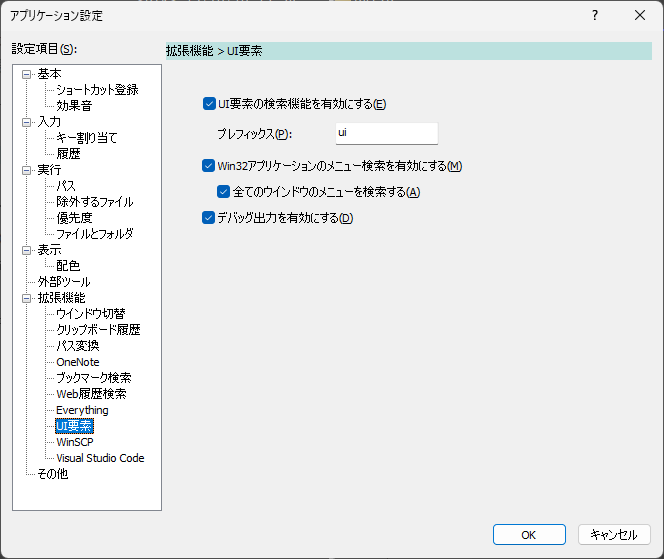 本機能を使用する場合は、アプリケーション設定の 拡張機能 > UI要素 から機能を有効化する必要がある。