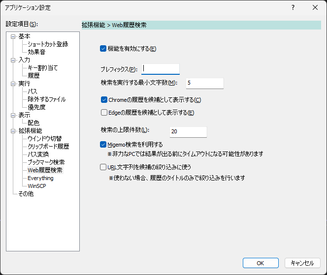 アプリケーション設定でプレフィックスが設定されている場合、そのプレフィックスを入力すると機能が発動する