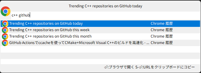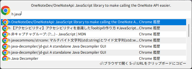 該当する項目を選択して実行すると、履歴のページをブラウザで開く。