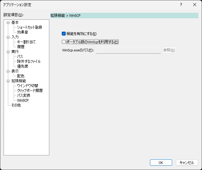 ポータブル版の場合、どこに実行ファイルがあるかを検出できないため、アプリケーション設定でパスを指定する必要がある